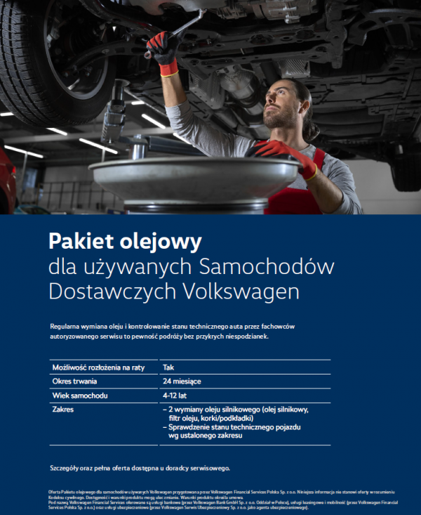 Zachęcamy do skorzystania z okazji na zakup Pakietu olejowego dla używanych Samochodów Dostawczych Volkswagen.